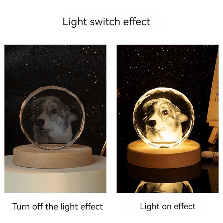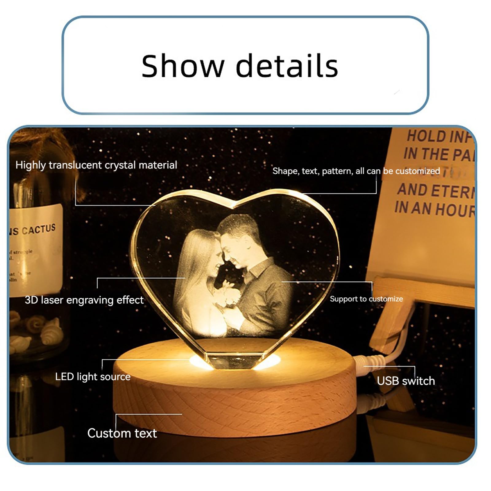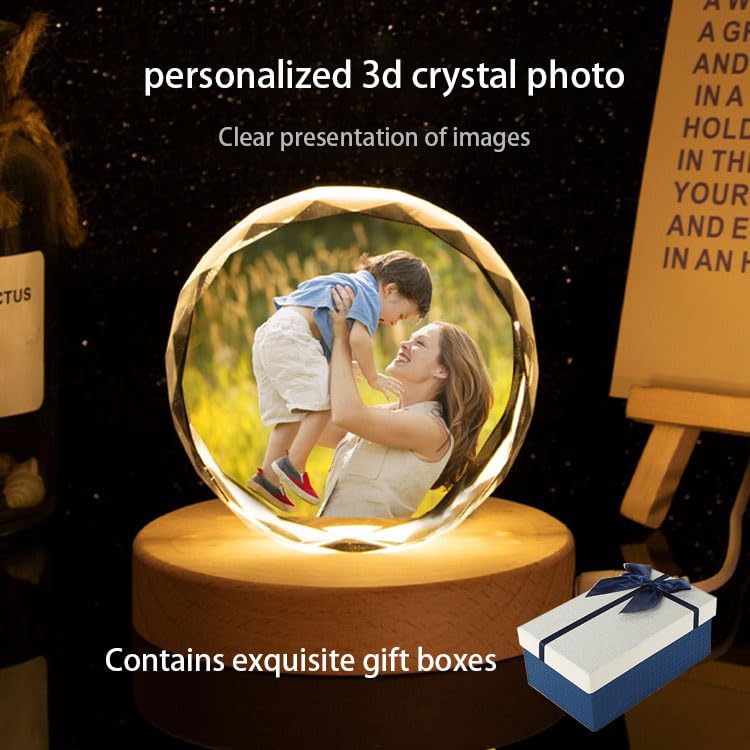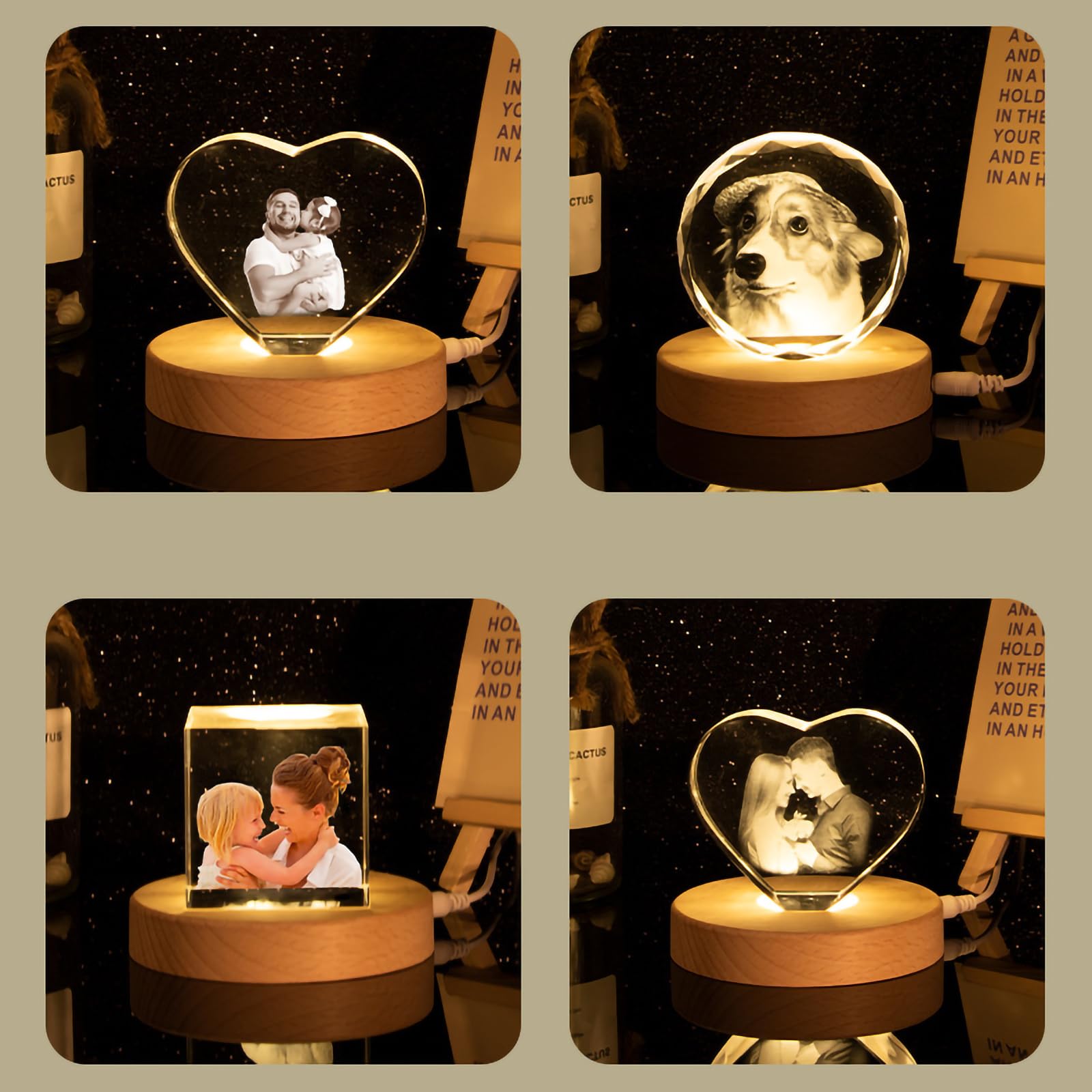 Custom 3D Crystal Photo,3D Picture in Crystal Engravable Text,3D Photo Crystal with Lighted Base,Engraved Crystal Gifts for Parents, Wife, Children, Friends and Lovers
